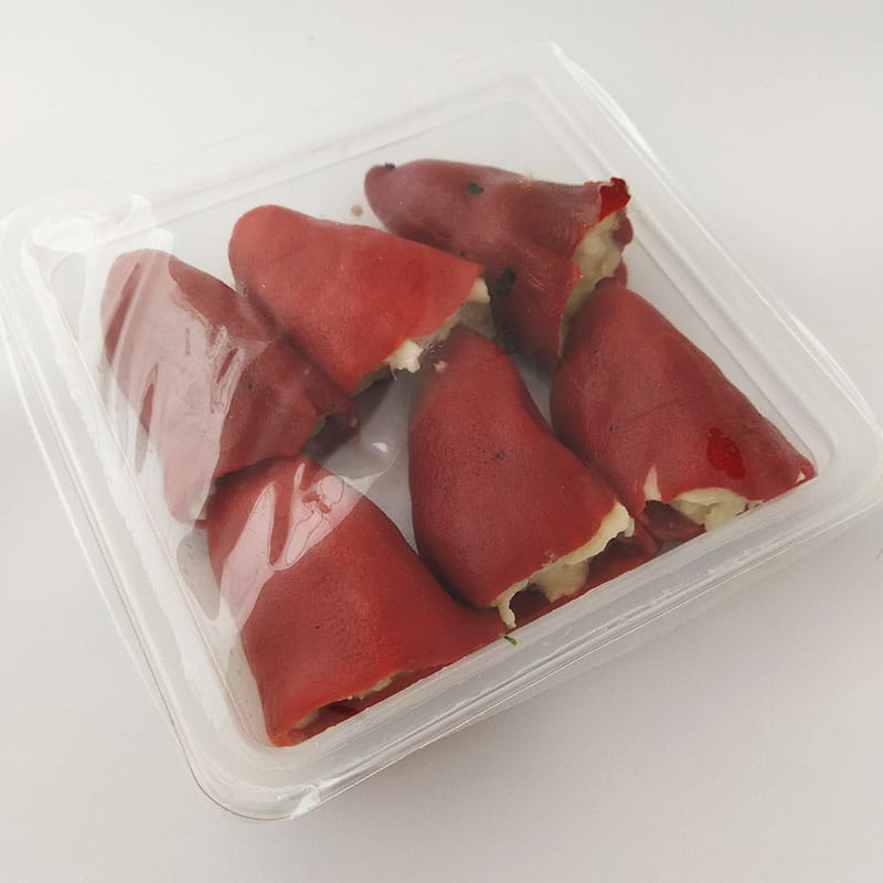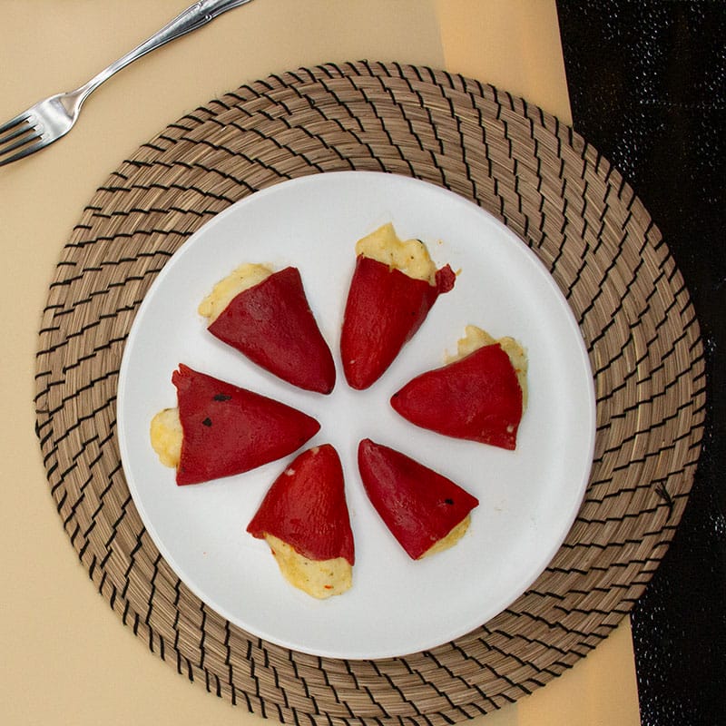 Estos Pimientos Rellenos de Bacalao están cocinados con una Bechamel hecha a base de leche de caserío, un Bacalao de categoría, y unos Pimientos de Piquillo tiernos y carnosos. No les agregamos salsa para que tú utilices la que más te guste y les des tu toque personal. ¡Pon sobre tu mesa estos Pimientos rellenos de Bacalao y cuélgate una buena medalla de Chef!